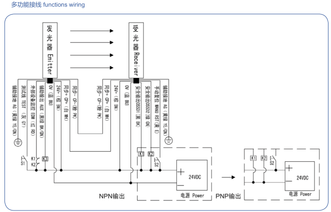 08,12,16,20,24.......100;For multifunctional SND/E safety light curtains with other optical axis spacing, please refer to the above table.