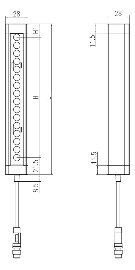 16.5mm(light axis pitch: 10mm), 26.5mm(light axis pitch: 20mm), 46.5mm(light axis pitch: 40mm);
