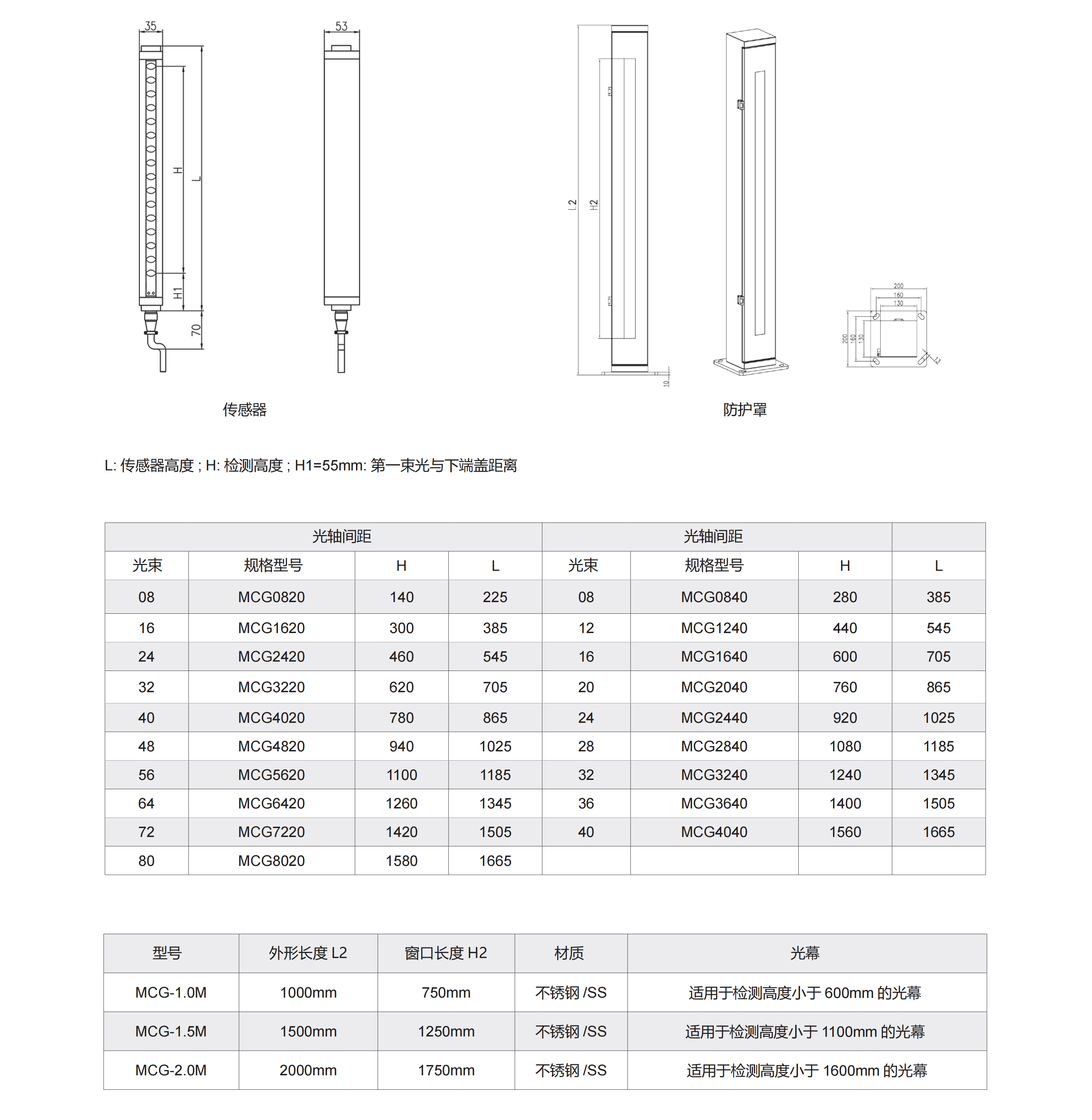 | 檢測高度 | H=(xx-1)×光軸間距,xx為光束數 |