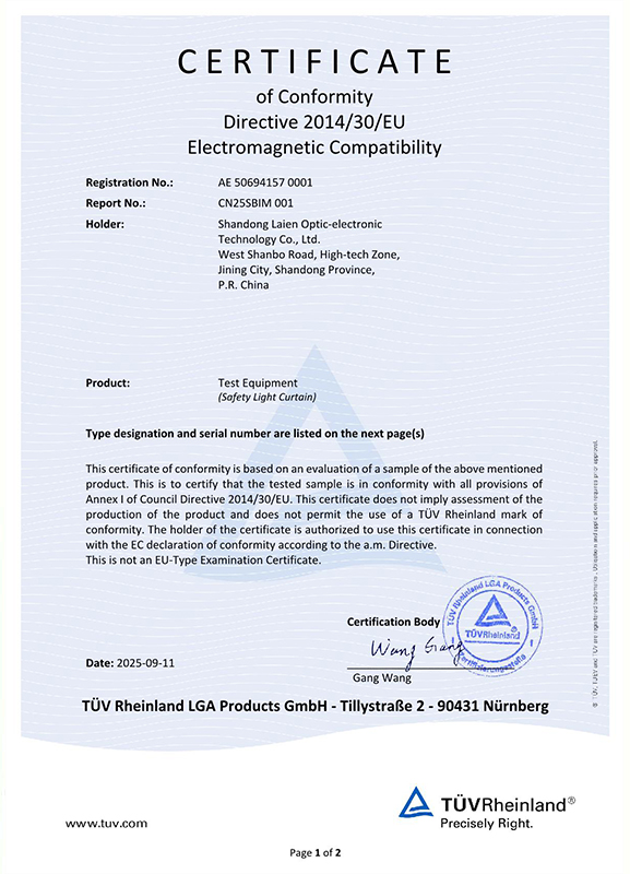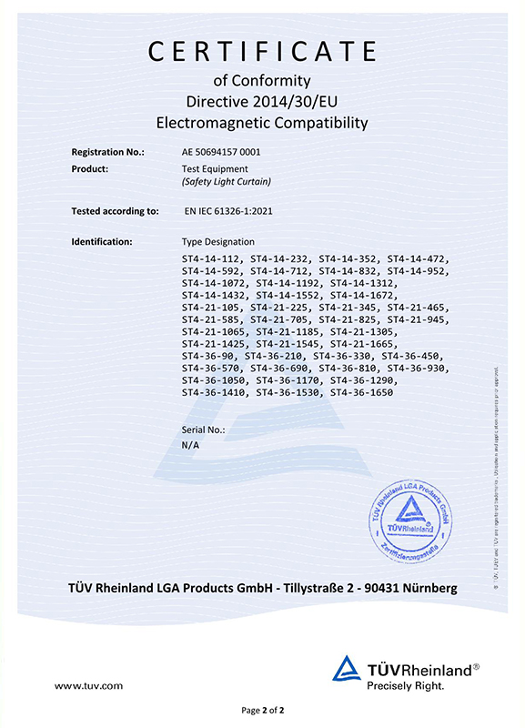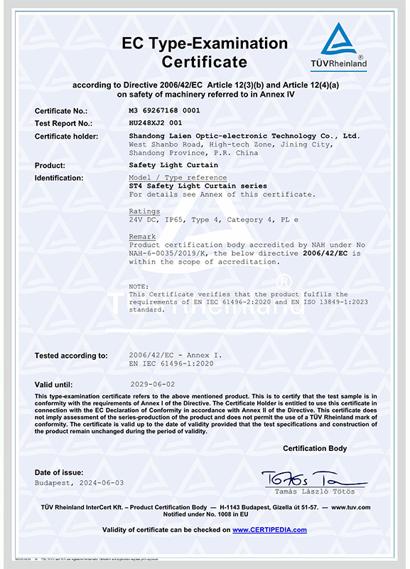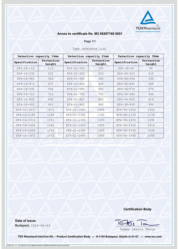 ST4系列安全光幕TUV認證